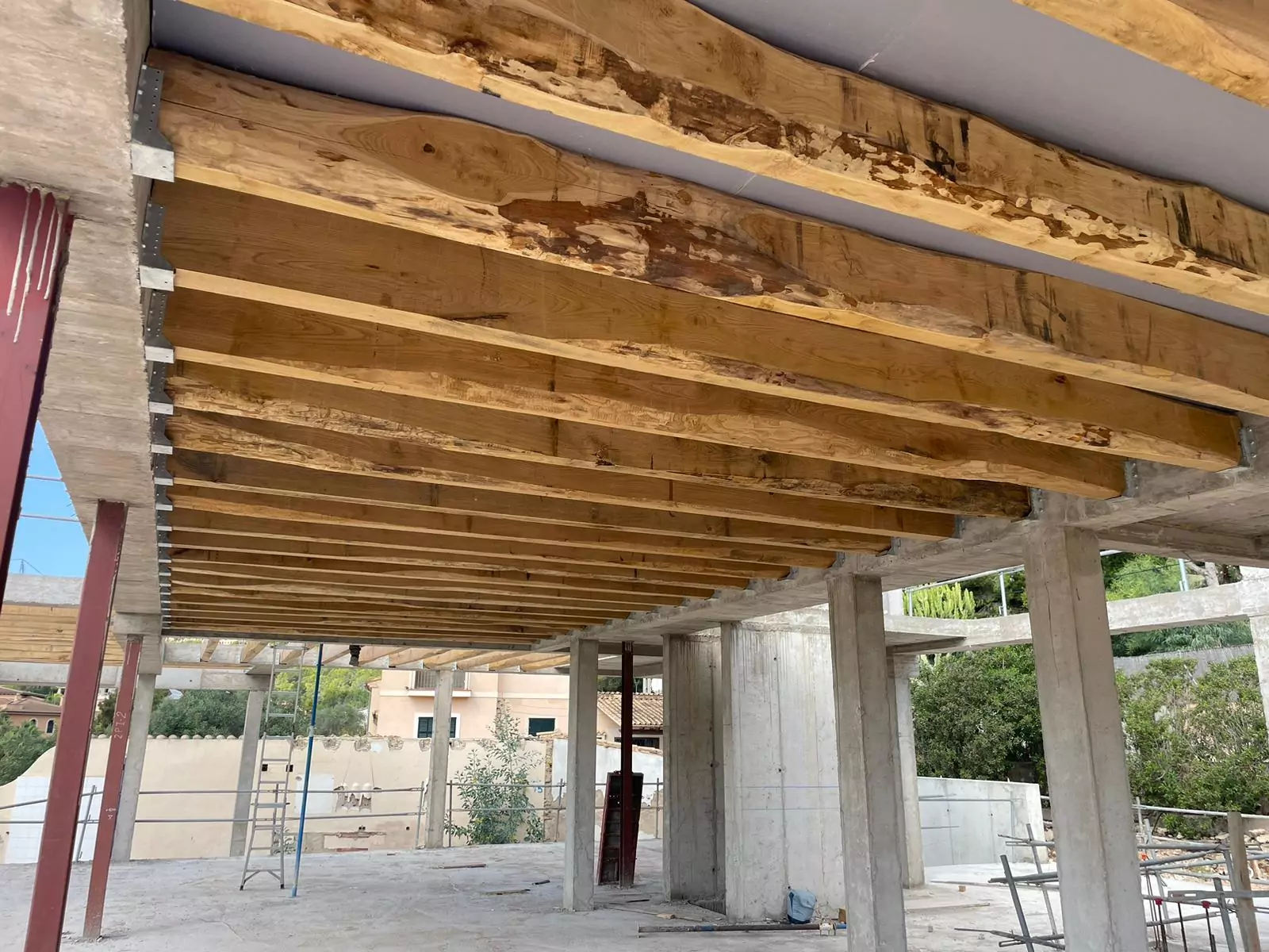 La madera de castaño es una opción excelente para la construcción, ya que es duradera y tiene un hermoso acabado natural. Además, utilizarla en cubiertas y forjados no solo aporta un toque estético, sino que también puede mejorar el aislamiento térmico de la vivienda, algo muy valioso en un lugar como Mallorca. La combinación de la arquitectura local con materiales sostenibles seguramente resultará en un hogar acogedor y armonioso.